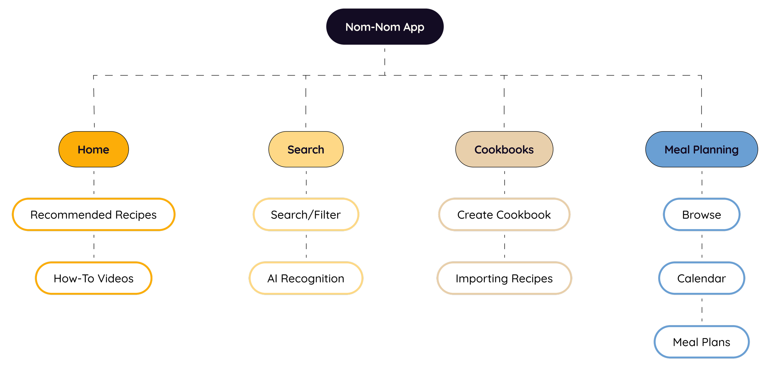 We also made a more high-level version of the information architecture to make it more digestible and presentable, only highlighting the most important key features.