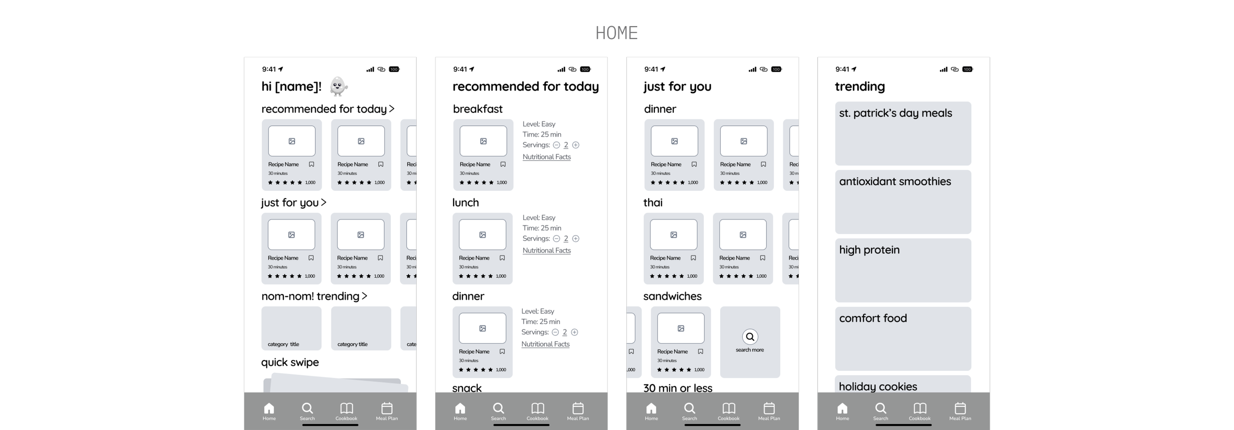 The Home page provides different categories of recommendations from tailored dishes for each meal of the day to what’s popular on the app.