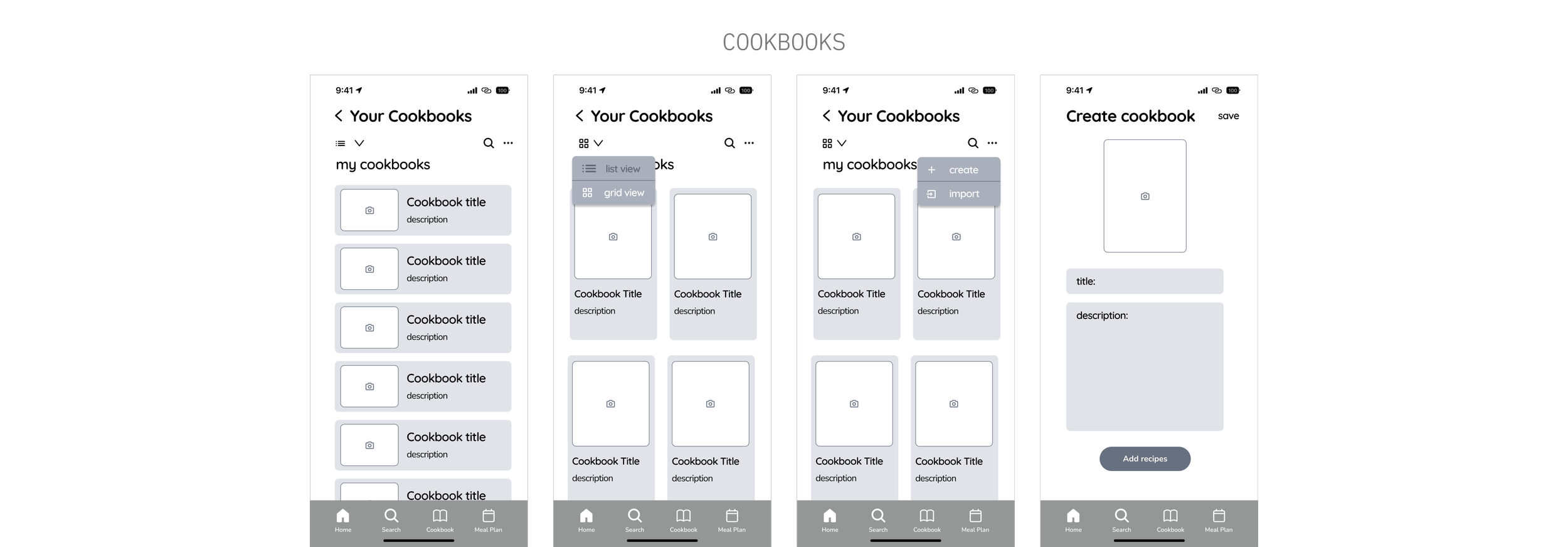 Both list and grid view options are available to see the user's library of custom cookbooks.