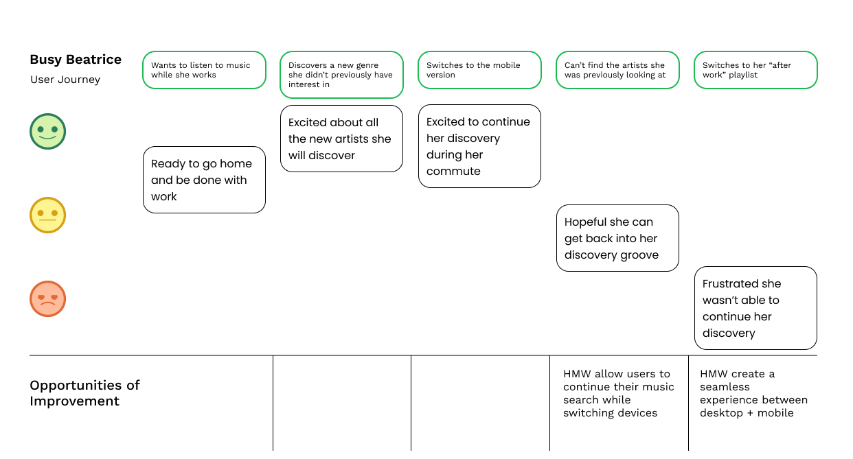 I personally built Niche Nancy for someone that needs a wider variety of recommendations to enhance her discovery of new music. Other personas developed focus on other aspects of the insights.